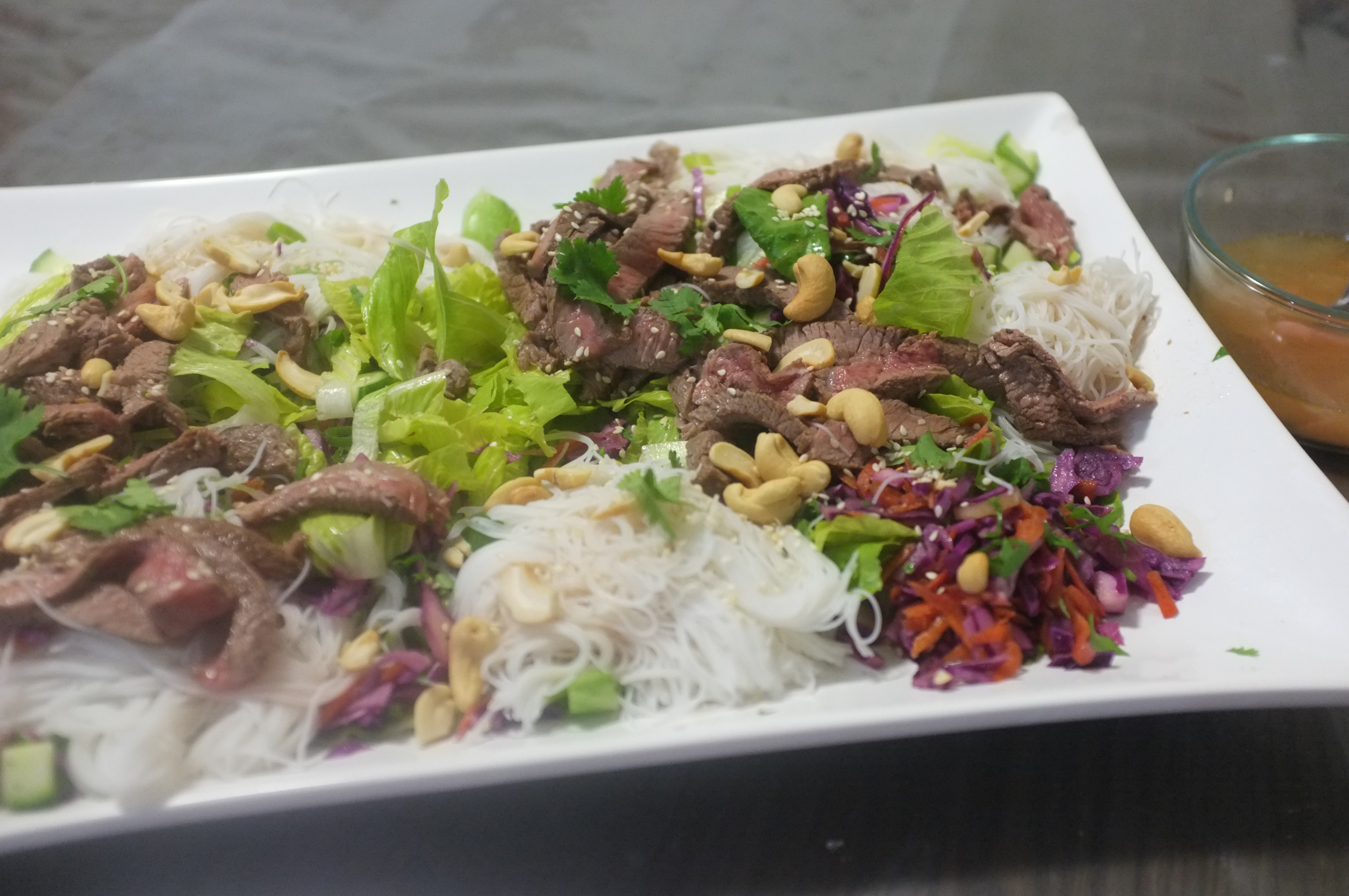 Now for no other reason than that I don’t have time to do a separate post, I wanted to show off the beef noodle salad with ginger dressing that I made last night for dinner (pictured above). You can see the recipe for free by clicking here.