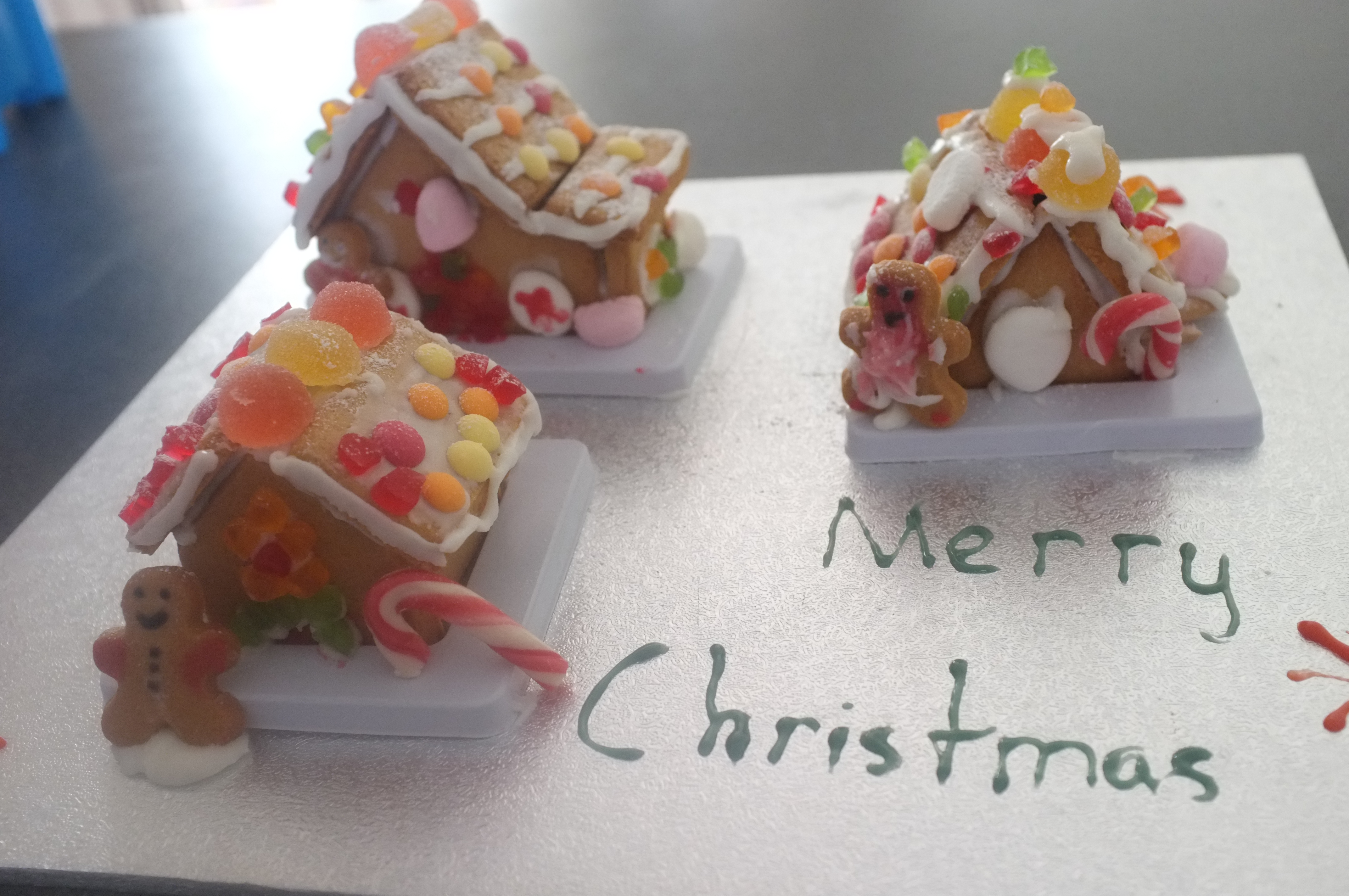 Day two involved getting the kids to put together and decorate a little gingerbread ‘village’ to take to a party with other families from their school. It rained again, so there were 50 or 60 people gathered in our friends’s not-huge house. It actually made for a really fun and lively party. As we finally rounded up our children to go home we found two of them jumping on the trampoline in the backyard in the rain. Ah, the joys of being young, huh?