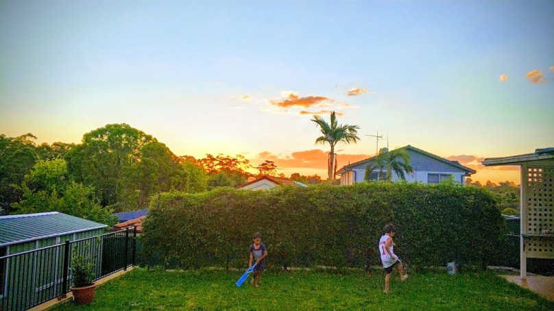 Backyard cricket last Friday after dinner, the first summer’s evening.