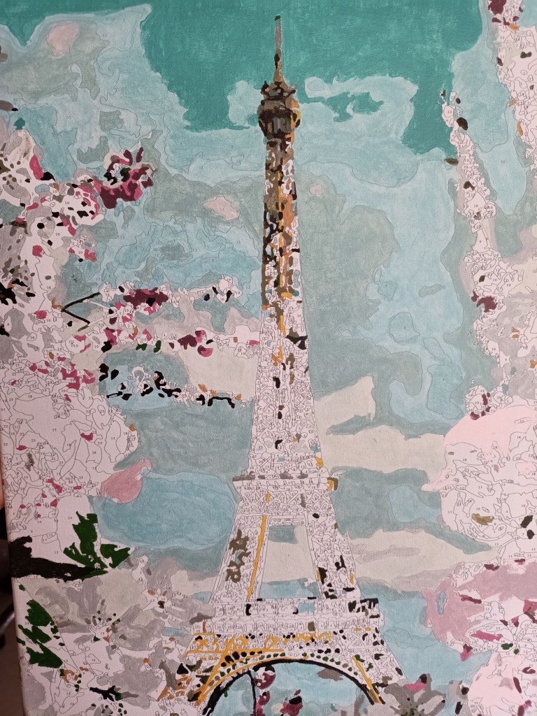I revived this blog, wrestled with a book introduction, planted my spring garden (although I would have done that anyway), and took a liking to painting by numbers. That’s the work in progress pictured above, a first attempt I’m sharing with three of the kids.