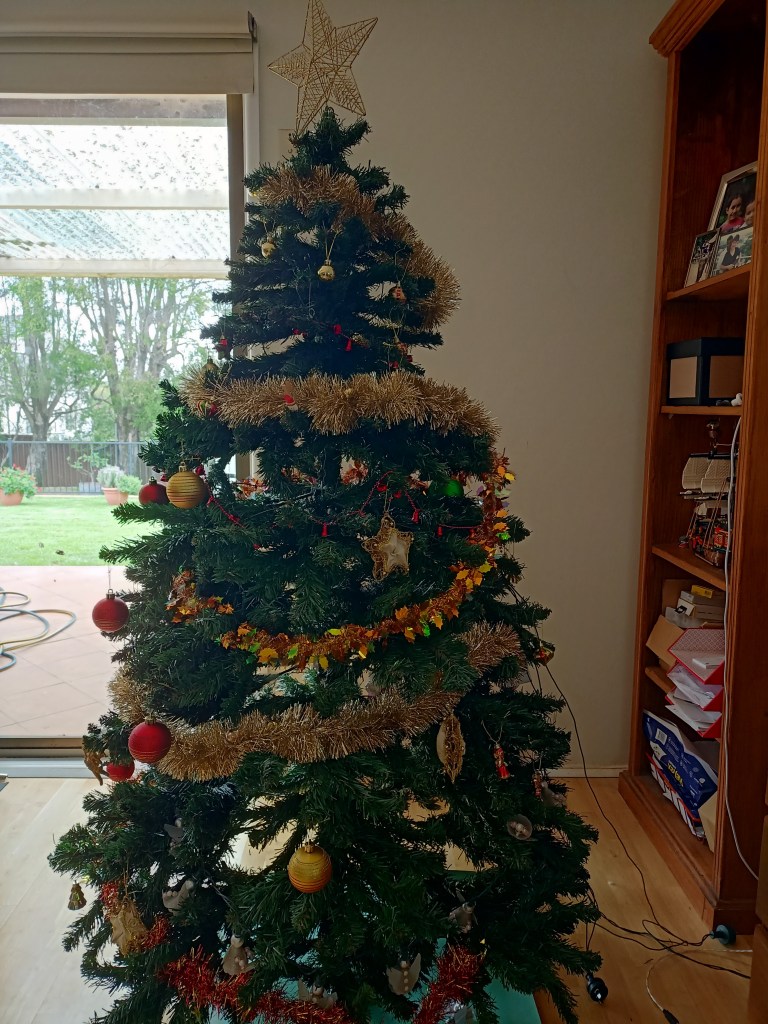 Our kids hauled the Christmas out of its box and dressed it up last weekend, and it makes me feel happy every time I look at it.